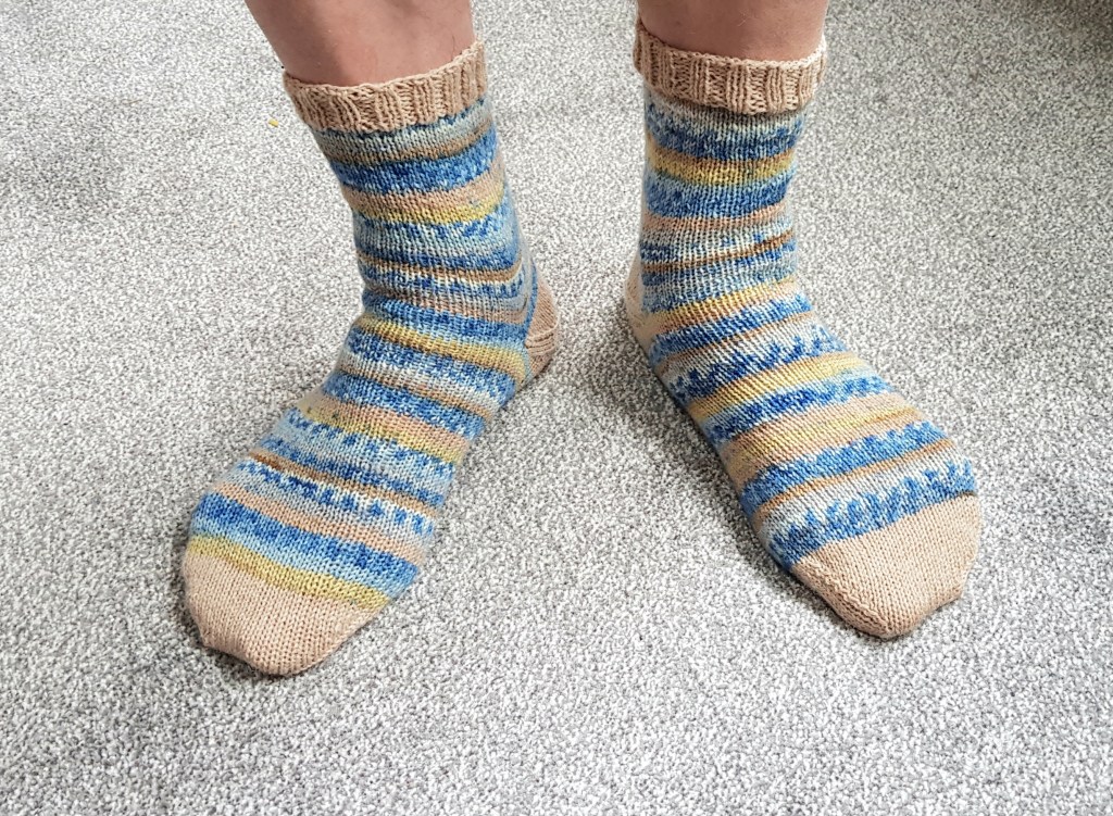 I find myself knitting lots of these tube socks lately and apart from being a relaxing knit, they are a great way to use up every last bit of the sock yarn left in the ball. If you suspect there may not be much left you can start the cuff with another colour yarn, then when the main ball runs out you can finish with the ribbing in the second colour again. This tutorial is ideally for someone who has knitted socks before but don't be put off if you want to give it a try, this is a detailed tutorial so you should be fine.